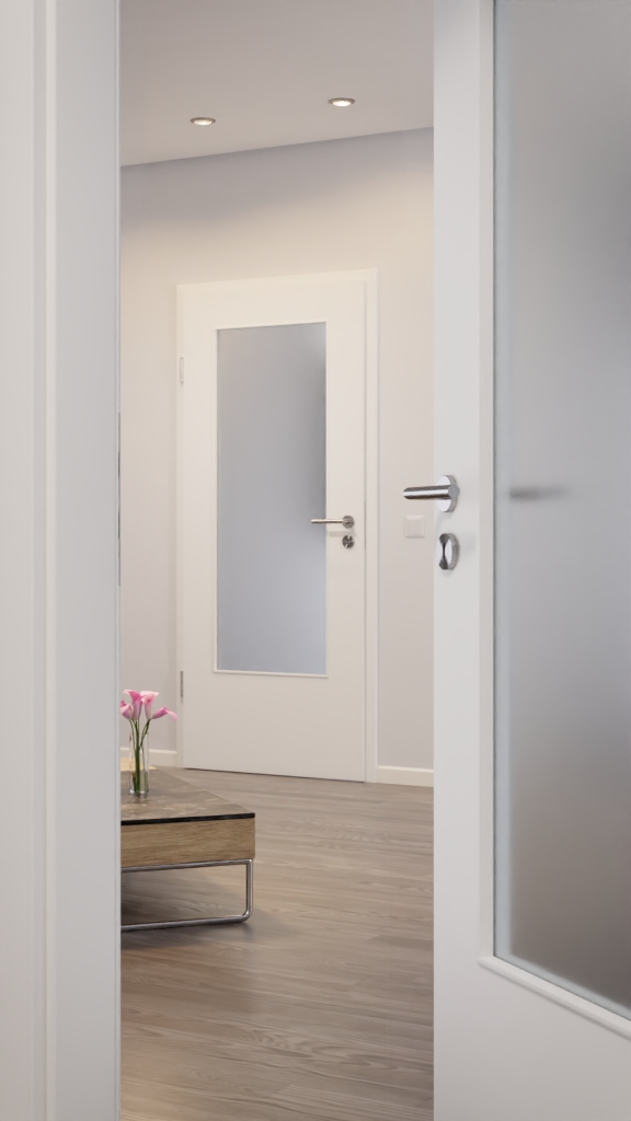 Wyposażone w lakierowaną powierzchnię w odcieniu białym 9016, te drzwi są łatwe do czyszczenia. Dzięki przeszkleniu, które można wyposażyć w sprawdzone szkło przezroczyste lub modną wersję szklanej, uzyskujesz przytulną atmosferę.