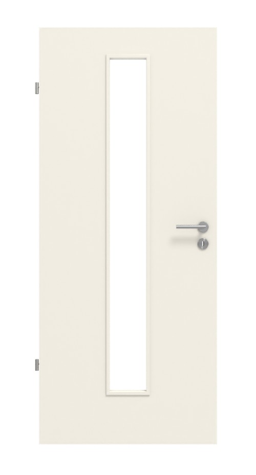 Nieograniczony widok na przeciwną stronę zapewnia centralnie umieszczony, wąski przeszklenie. Sięga ono prawie całej wysokości drzwi. W wyborze szkła od przezroczystego do matowego znajdziesz odpowiednie rozwiązanie dla swojego pomieszczenia. W standardowej konfiguracji skrzydło drzwiowe jest bez wkładu szklanego. Wypełnienie szklane jest dostępne za dodatkową opłatą.