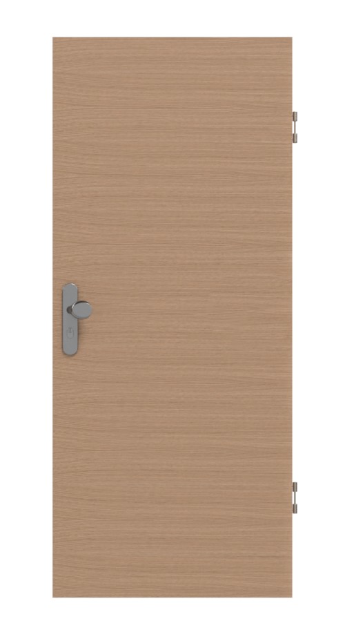 Drzwi wyposażone w płytę pełnoobwodową są pewnie osadzone w ramie dzięki dwóm 3-częściowym zawiasom, które są częścią zestawu. Izolację akustyczną zapewnia opadająca uszczelka dolna, która obok zamka profilowego również znajduje się w standardowym pakiecie.
