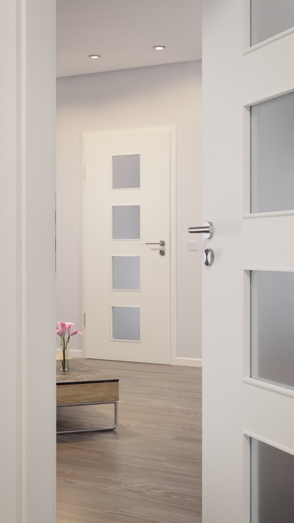Wyposażone w lakierowaną powierzchnię w białym lakierze 9010, te drzwi są łatwe do szybkiego i prostego czyszczenia. Dzięki przeszkleniu, które można wyposażyć w sprawdzone szkło przezroczyste lub modną wersję szklanej, uzyskujesz przytulną atmosferę.
