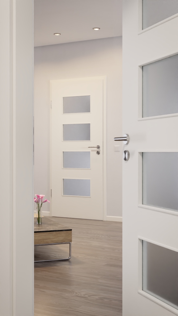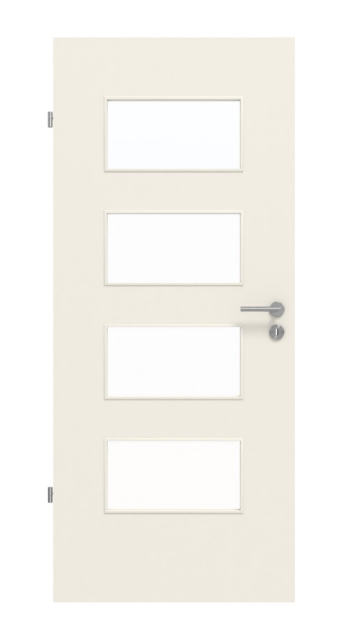 Dzięki lakierowanej powierzchni w białym kolorze RAL 9010, te drzwi są łatwe do czyszczenia. Dodatkowym atutem jest przeszklenie, które tworzy przytulną atmosferę i może być wyposażone w klasyczne szkło przezroczyste lub modną wariację szkła.