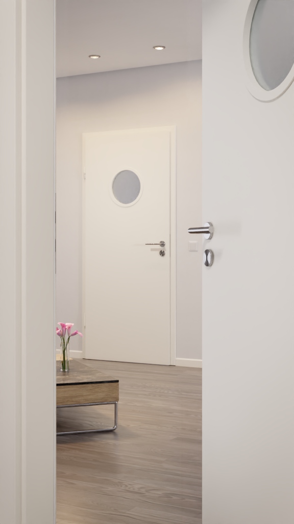 Wypełnienie z płyty wiórowej i rama z twardego drewna zapewniają wysoką stabilność, dzięki czemu drzwi nadają się również do szczególnie intensywnie użytkowanych pomieszczeń. Można również wybierać między kanciastymi a okrągłymi krawędziami oraz między skrzydłem drzwiowym prostym a frezowanym.