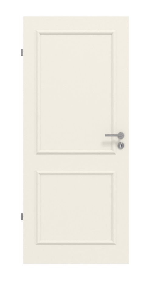Solidna wkładka wiórowo-otworowa w pomieszczeniu wewnętrznym drzwi zapewnia niezawodną wytrzymałość podczas codziennego użytkowania. Pod względem wizualnym drzwi wewnętrzne zachwycają eleganckim designem. Nałożony profil schodkowy tworzy atrakcyjną optykę z dwoma wypełnieniami, który nadaje Twojemu domowi ponadczasowy elegancki wygląd.