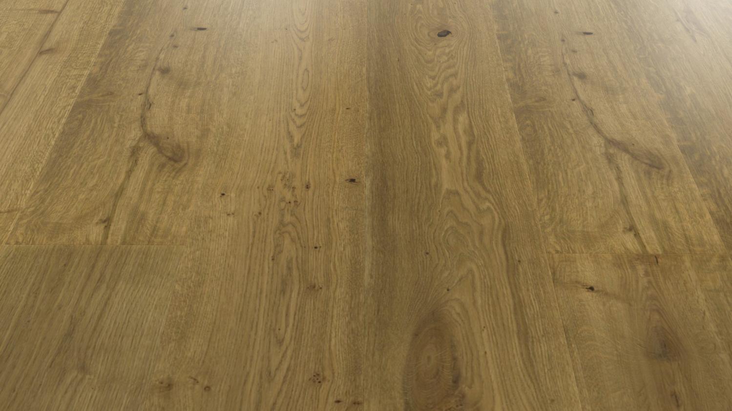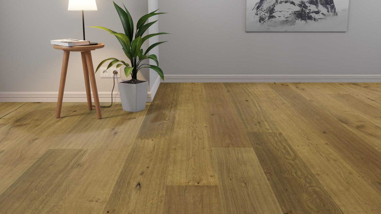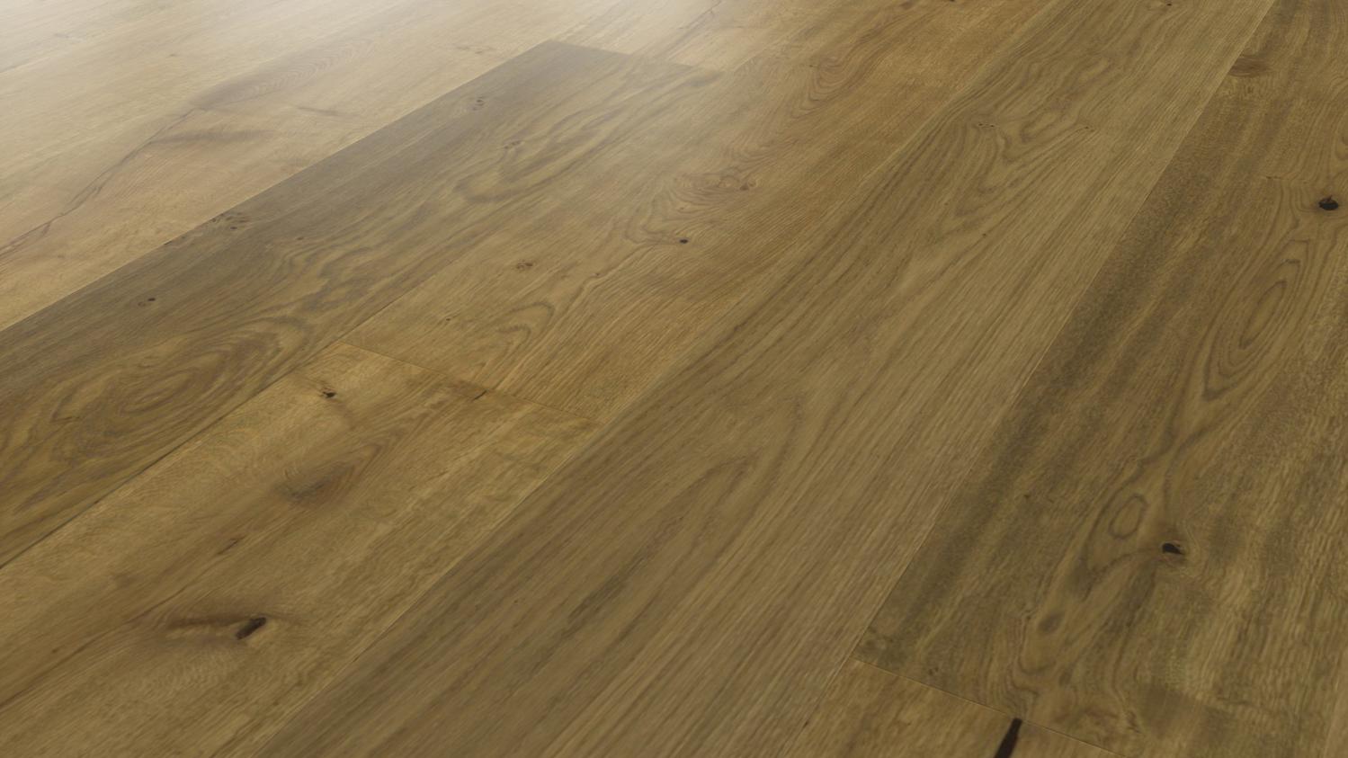 Ta ręcznie wykonana podłoga zachwyca niepowtarzalnym designem. Deska jest lekko wędzona, a dzięki delikatnemu struganiu ręcznemu zyskuje niepowtarzalny charakter, a delikatna obróbka naturalnym olejem uszlachetnia ją i nadaje jej ostateczny szlif. Szerokość 26 cm nadaje desce podłogowej Schlossdiele wyjątkowo autentyczny charakter.