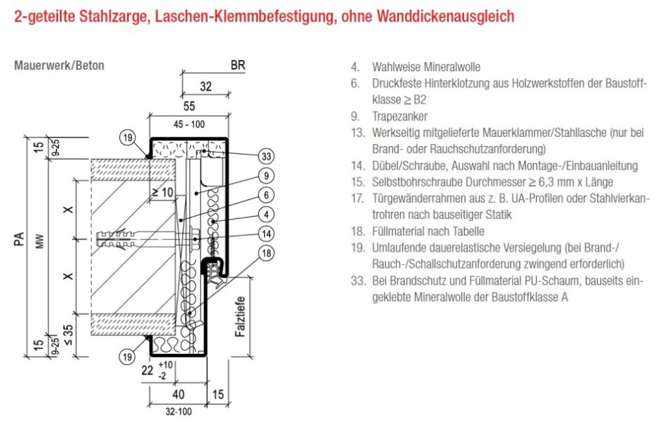 Karta danych: rysunek techniczny 2-częściowej ościeżnicy stalowej