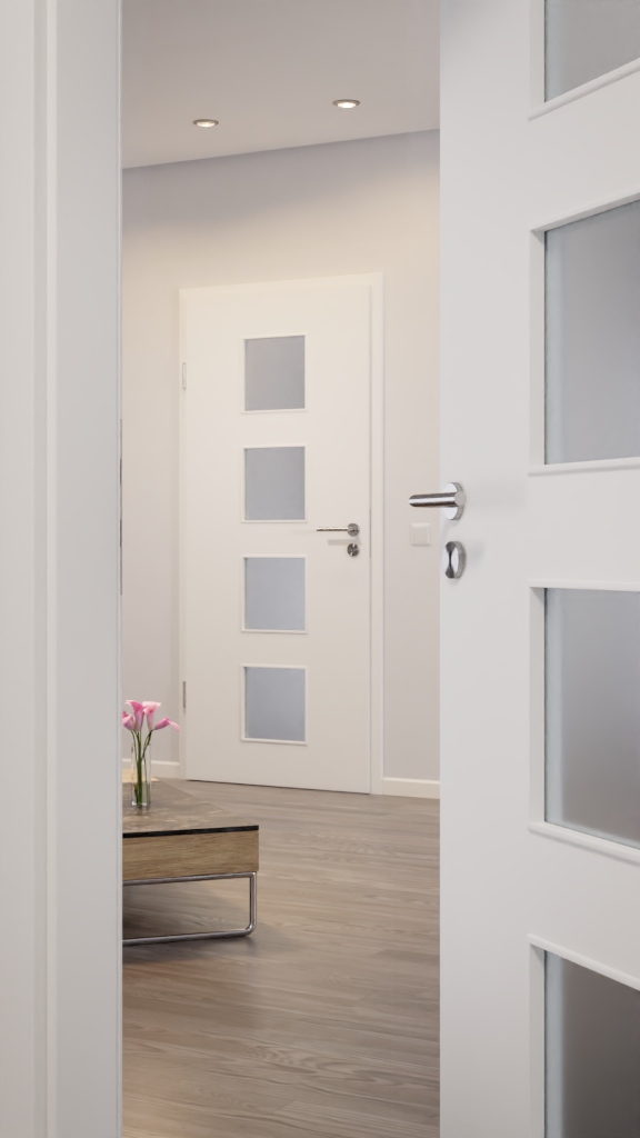 Wyposażone w lakierowaną powierzchnię w kolorze białym 9016, te drzwi są łatwe i szybkie w czyszczeniu. Dzięki przeszkleniu, które można wyposażyć w sprawdzone szkło przezroczyste lub modną wersję szklanej, uzyskujesz przytulną atmosferę.