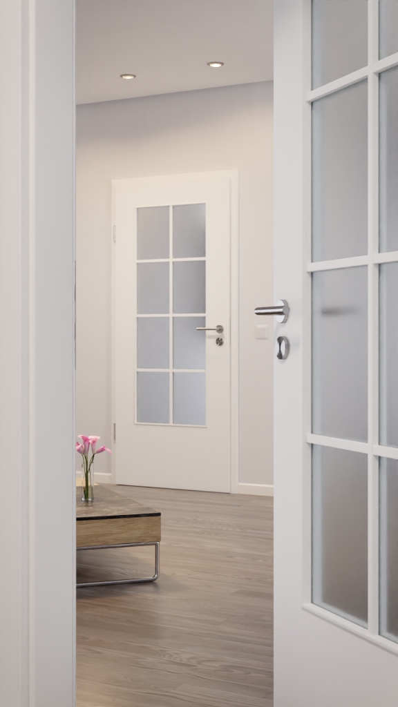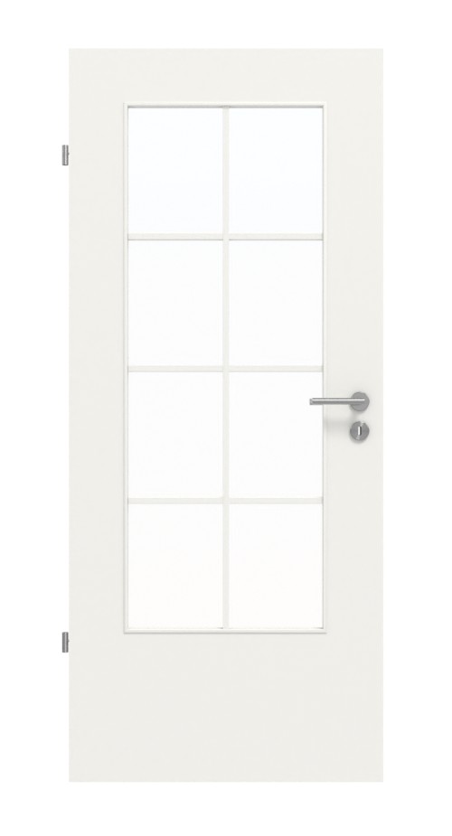 Wyposażone w lakierowaną powierzchnię w kolorze białym 9016, te drzwi są łatwe i szybkie w czyszczeniu. Dzięki przeszkleniu, które można wyposażyć w sprawdzone szkło przezroczyste lub modną wersję szklaną, uzyskujesz przytulną atmosferę.