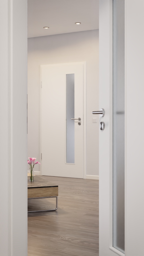 Elegancka biel Brillantweiß 9016 tych drzwi, w połączeniu z przeszkleniem, które można wyposażyć w tradycyjne szkło przezroczyste lub nowoczesną wersję szklanej, tworzy przyjazną atmosferę. Dzięki lakierowanej powierzchni drzwi są również łatwe w pielęgnacji.