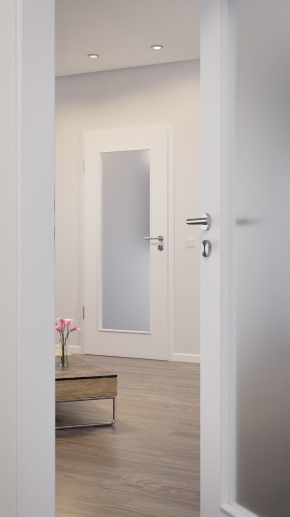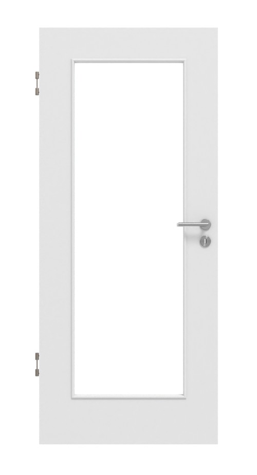 Wykusz szklany rozciąga się niemal na całej powierzchni skrzydła drzwi. Dzięki temu zapewnia intensywne doświetlenie i w ten sposób tworzy przestrzeń pełną światła.