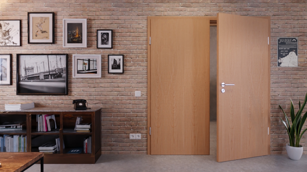 Dla rustykalnego i naturalnego uroku: Niemiecki producent drzwi Lebo stworzył ten model z podwójnymi skrzydłami jako element wyposażenia, który wypełnia Twój dom przytulnością i dbałością o szczegóły.