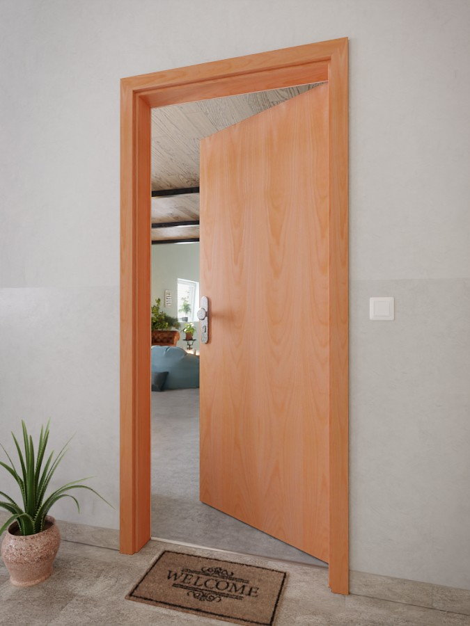 Izolacja akustyczna i odporność na odkształcenia w jednym: Drzwi wejściowe już w standardowej konfiguracji wyróżniają się solidną budową. Bez problemu wytrzymują typowe wahania temperatury i wilgotności powietrza, a także codzienne hałasy. Drzwi posiadają wkład z płyty wiórowej pełnej. W zależności od wykonania wkład może być wielowarstwowy. Klasa odporności RC2 spełnia zalecane standardowe wymagania ochronne. W zależności od indywidualnych wymagań można zwiększyć klasę klimatyczną i klasę odporności modelu. Uwaga: W standardowej konfiguracji elementu drzwiowego nie ma zabezpieczenia antywłamaniowego. Więcej informacji w sekcji Funkcje ochronne.