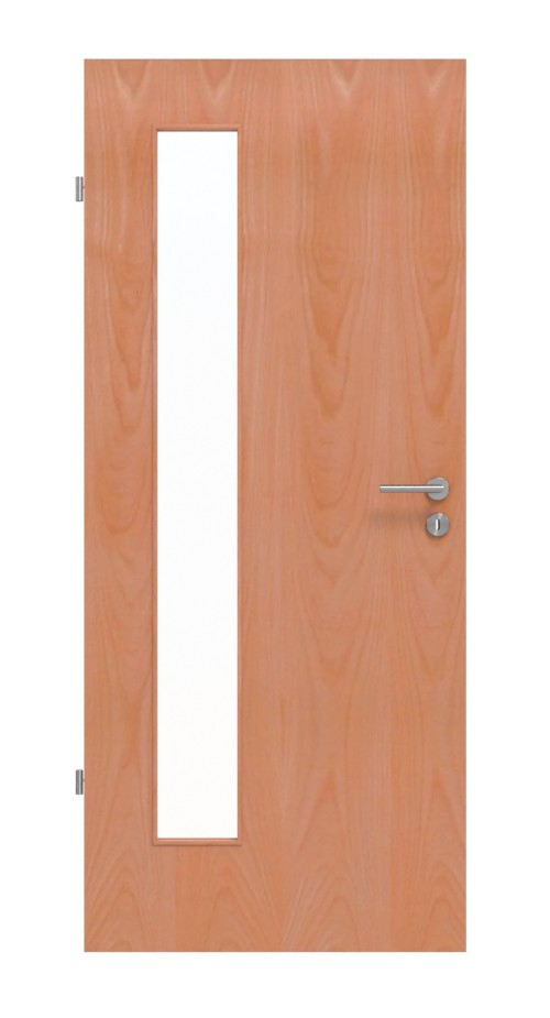 Idealnie dopasowane drewniane drzwi z otworem świetlnym: Gładkie drzwi Jeld-Wen z serii Optima są pokryte fornirem w kolorze buk Classic i łączą w sobie wycięcie na szybę z wytrzymałą strukturą.