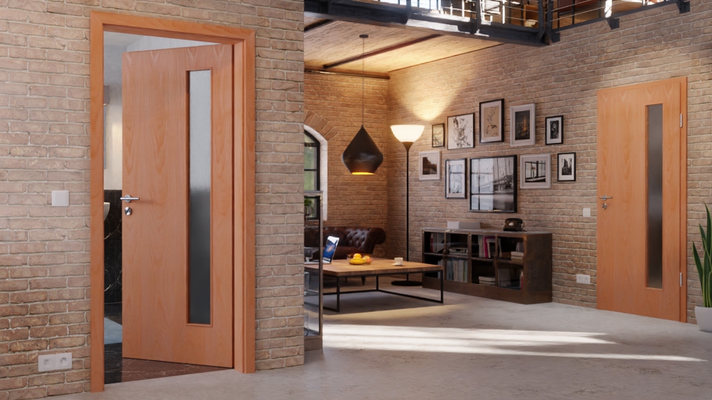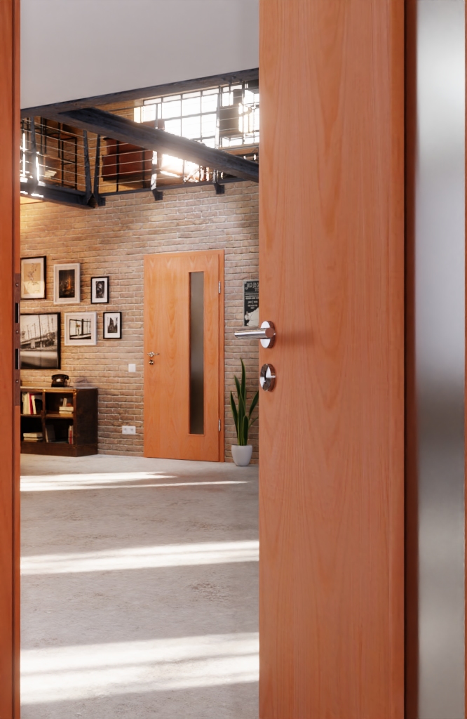 Drzwi wewnętrzne Optima z okleiną z forniru i listwą przyszybową, przekonujące prostym designem i wysoką funkcjonalnością, są jednym z najlepszych produktów firmy Jeld-Wen.