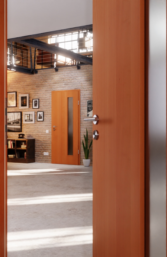 Otwór świetlny tych drzwi zapewnia wrażenie otwartej przestrzeni mieszkalnej . Do wyboru klasyczne szkło przezroczyste lub inna modna odmiana szkła. Stabilność zapewnia ramiak z twardego drewna, umieszczony wewnątrz skrzydła.