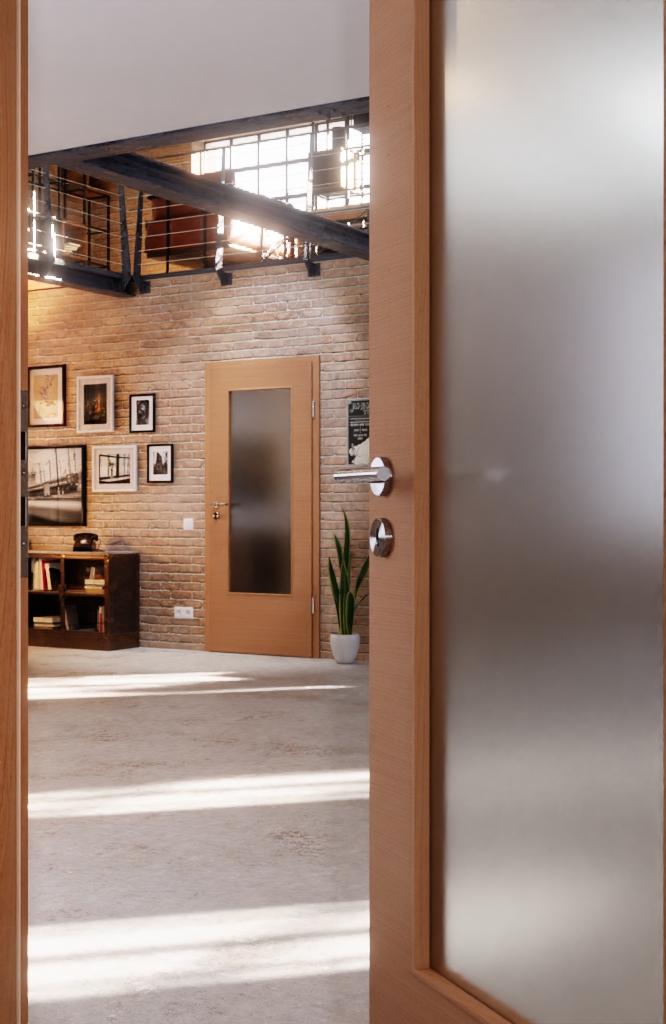 Naturalne uczucie na wyciągnięcie ręki: Połączenie forniru z prawdziwego drewna bukowego i gładkiego skrzydła drzwiowego nadaje tym drzwiom wewnętrznym od Lebo wyjątkowy charakter.