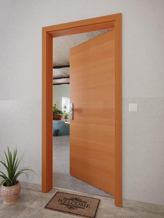 Odporne na odkształcenia i izolujące akustycznie: Solidna, standardowa budowa drzwi wejściowych zapewnia odporność na typowe wahania temperatury i różnice wilgotności powietrza. Ponadto zapewnia minimalną ochronę przed codziennym hałasem w najniższej klasie izolacyjności akustycznej. Drzwi posiadają wkład z płyty wiórowej pełnej. W zależności od wykonania, rdzeń drzwi może składać się z kilku warstw. Standardową ochronę zapewnia klasa odporności RC2 (zalecana). W zależności od indywidualnych potrzeb klienta można zwiększyć klasę odporności i klasę klimatyczną. Uwaga: Standardowa konfiguracja elementu drzwiowego nie obejmuje zabezpieczenia antywłamaniowego. Więcej informacji można znaleźć w zakładce Funkcje ochronne.