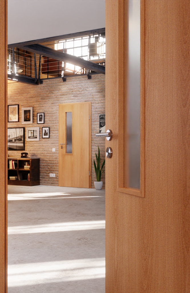 Powierzchnia jest odporna na działanie czynników zewnętrznych, takich jak uderzenia, ciepło i wilgoć. Jest również odporna na zarysowania i ścieranie. Gwarantuje to prasowanie papieru dekoracyjnego, papierów kraftowych w wielu warstwach oraz ochrona overlay. Preferencyjnie jest szczególnie stosowana w wynajmowanych obiektach i mieszkaniach własnościowych, ale także w pomieszczeniach komercyjnych. Przy wstawieniu drzwi masz wybór między płytą wiórową a pełną wiórową.