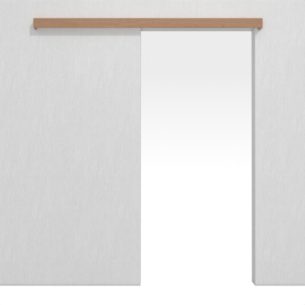 Indywidualny system drzwi przesuwnych montowany przed ścianą w naturalnym matowym bukowym wykończeniu (pionowo) od producenta marki Lebo: