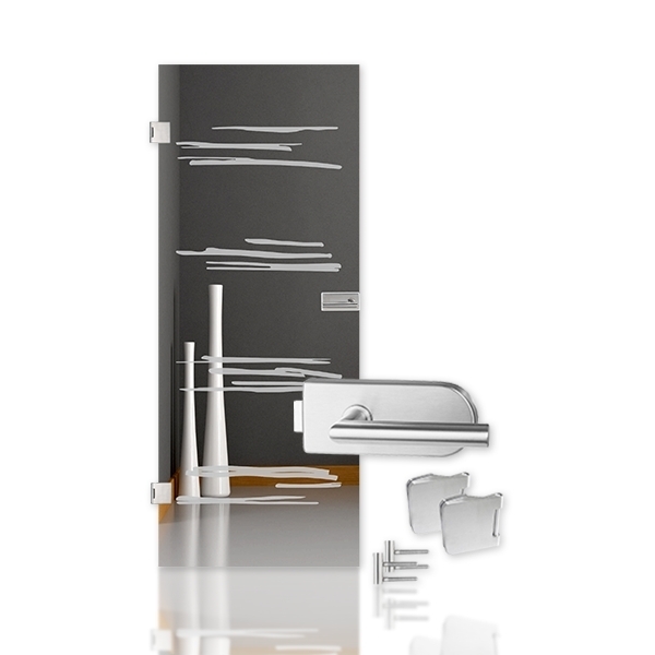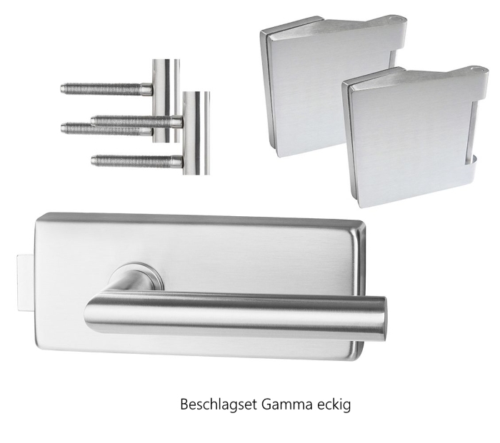 Aby dopełnić spójną koncepcję designerską, w pakiecie oszczędnościowym zawarty jest już odpowiedni zestaw okuć Gamma. Elegancka klamka i prosta obudowa zamka dopełniają nowoczesny wygląd drzwi całkowicie szklanych.
