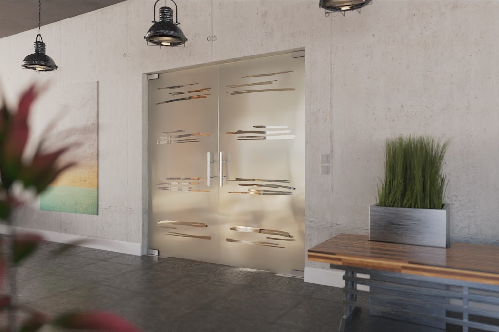 Atrakcyjna podwójna drzwi wahadłowe z mocnego i specjalnie pokrytego szkła bezpieczeństwa: