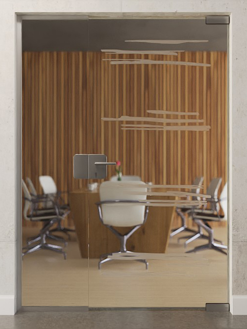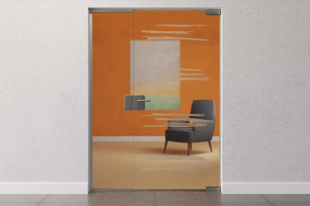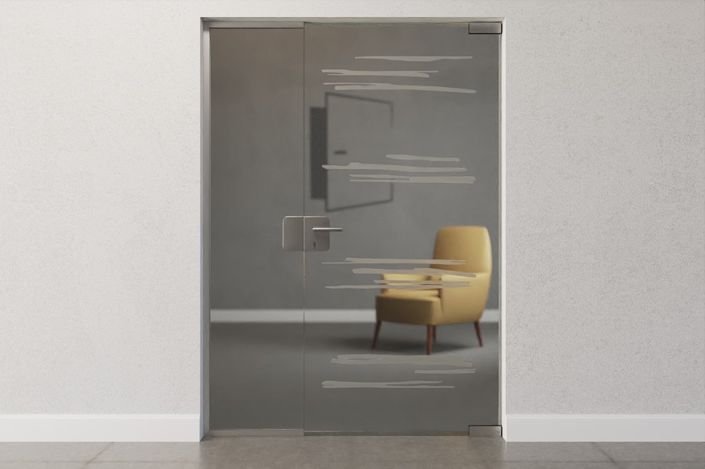Poziome linie łączą się tutaj w cztery grupy. Luźne pociągnięcia pędzla mają matowe wykończenie i sprawiają wrażenie, jakby zostały wykonane ręcznie. To przezroczyste szkło wpuszcza do pomieszczenia światło.