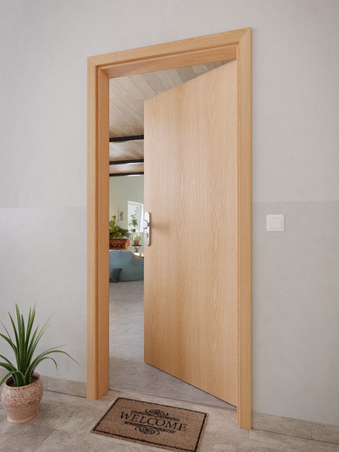 W przypadku drzwi wyjściowych z mieszkań stabilność klimatyczna i ochrona akustyczna są najważniejsze. Dzięki solidnej płycie pełnoobwodowej chroni również w standardowej konfiguracji przed typowymi różnicami wilgotności powietrza i wahania temperatury. W wyższych klasach klimatycznych stosuje się dodatkowo płytę ochrony klimatycznej. Ponadto, przy fachowym montażu, tłumi codzienne hałasy. Dzięki tym właściwościom nadaje się szczególnie do mieszkań własnościowych i wynajmowanych. Standardowa ochrona zapewniana jest przez klasę odporności WK 2 (zalecana). Ulepszanie do wyższych klas klimatycznych lub odpornościowych należy starannie sprawdzić i łatwo skonfigurować. Proszę pamiętać: standardowa konfiguracja elementu drzwiowego nie obejmuje ochrony przed włamaniem.
