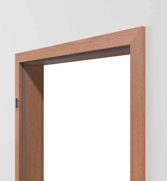 Optymalny stelaż do drzwi wejściowych do mieszkania: Zaawansowana powierzchnia HPL (laminat wysokociśnieniowy) pokrywa prostokątną ościeżnicę GetaLit do drzwi wejściowych w kolorze bukowym z firmy Westag.