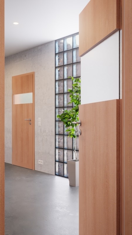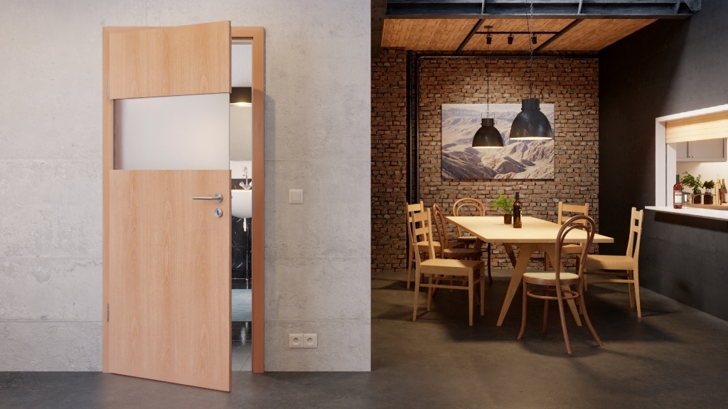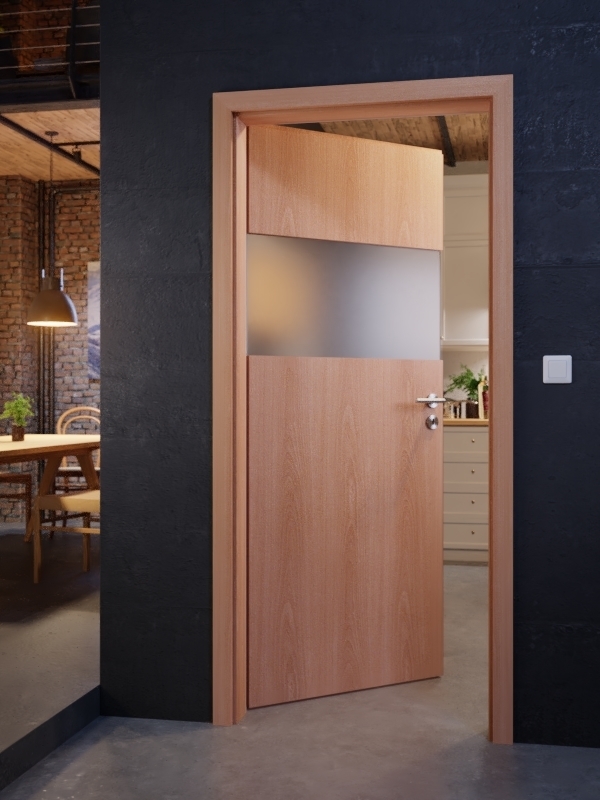 W górnej części drzwi znajduje się szeroki, poziomy pas świetlny. Dzięki temu do Twojego pomieszczenia wpada światło, a Ty masz subtelny wgląd w przestrzeń, gdy stoisz bezpośrednio przed drzwiami.