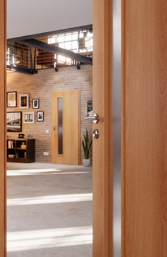 Położenie otworu szklonego po stronie zamka oraz jego wysokość umożliwiają widok na nadchodzące osoby. To przydatna funkcja w bardzo ruchliwych środowiskach, takich jak biura czy kuchnie. Mieszkaniec ma również więcej światła przy klamce i zamku.