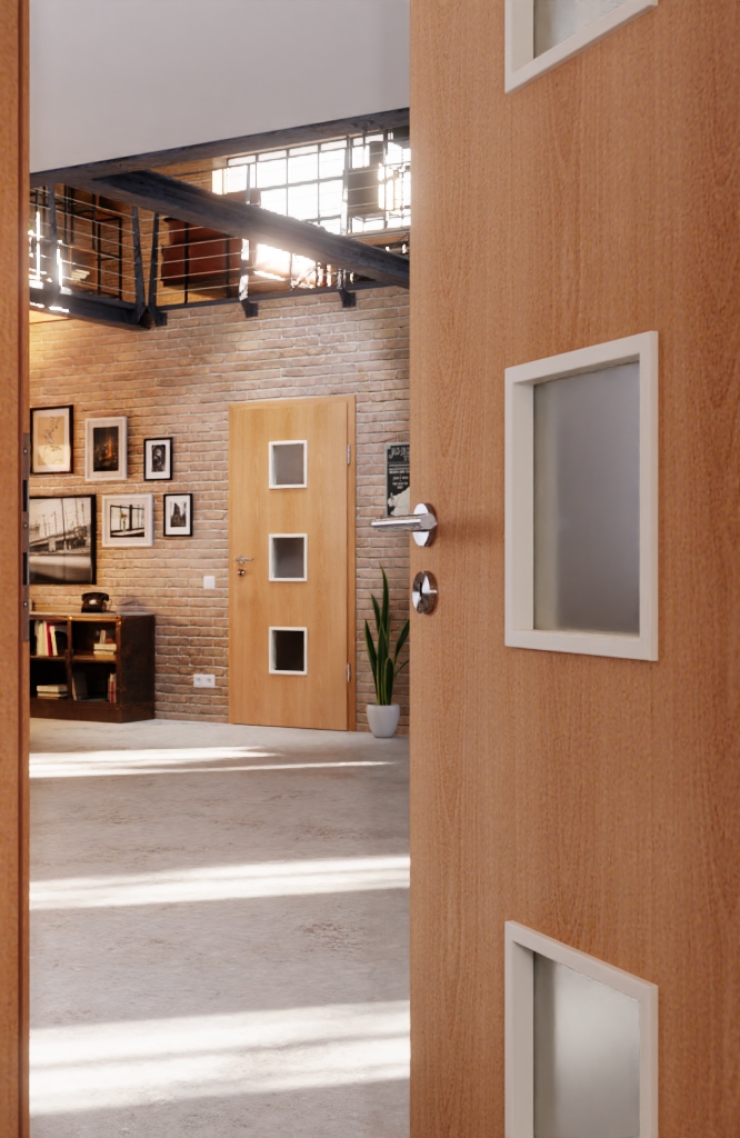 Te trzy otwory świetlne w środkowej części drzwi zapewniają bogate światło w Twoim pomieszczeniu oraz widok na przeciwną stronę. Ochrona przed stłuczeniem szkła w dolnej części drzwi to kolejna pozytywna cecha.
