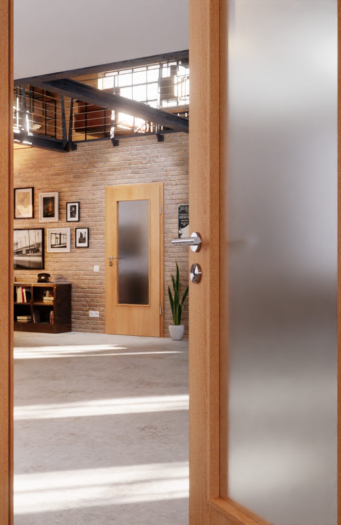 Powierzchnia jest odporna na zarysowania i ścieranie oraz wytrzymuje działanie wilgoci, uderzeń i ciepła. Te właściwości są możliwe dzięki sprasowaniu wielowarstwowych papierów kraftowych, papieru dekoracyjnego i ochrony overlay. Jest szczególnie odpowiednia dla wynajmowanych mieszkań i mieszkań własnościowych, a także dla nieruchomości komercyjnych. Masz do wyboru płytę wiórową i pełną wiórową w przypadku wkładu drzwiowego.