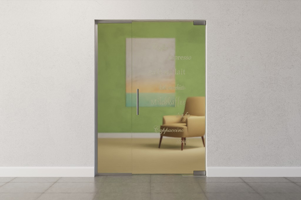 Zabudowę całoszklaną można konfigurować w różnych wysokościach i szerokościach. Można w niej również dokładnie określić szerokość skrzydła drzwiowego. Szerokość elementu bocznego wynika z szerokości całkowitej pomniejszonej o szerokość skrzydła drzwiowego.