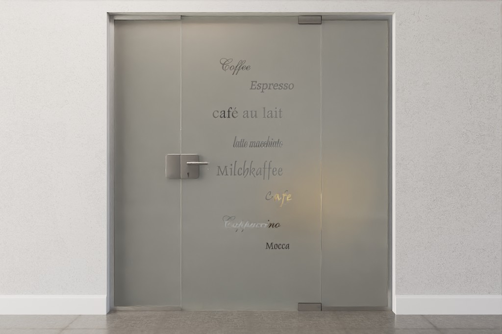 Ulubiona kawiarnia tuż za rogiem staje się tu modnym miejscem z designerskim wystrojem. Zabawne napisy wokół kawy wyraźnie wyróżniają się na matowej powierzchni .