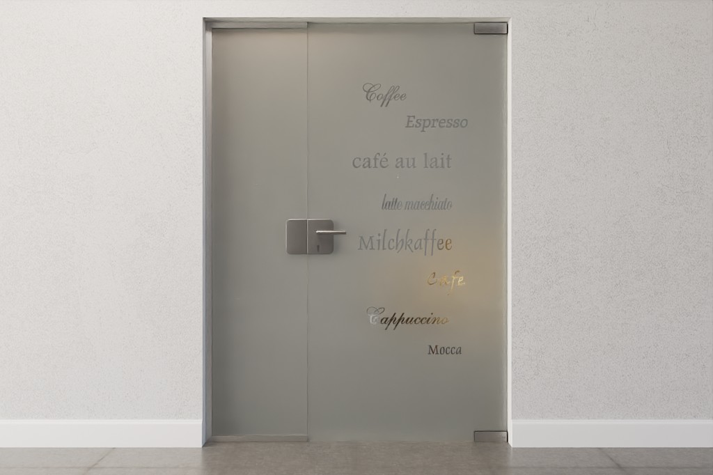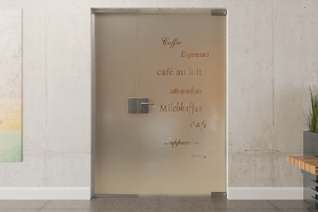 Stylowe drzwi szklane z boczną szybą z wytrzymałego i specjalnie pokrytego szkła bezpieczeństwa: