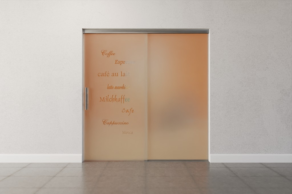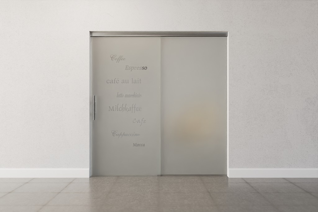 Dekoracyjna drzwi przesuwne z stałym bocznym panelem z wytrzymałego szkła hartowanego: