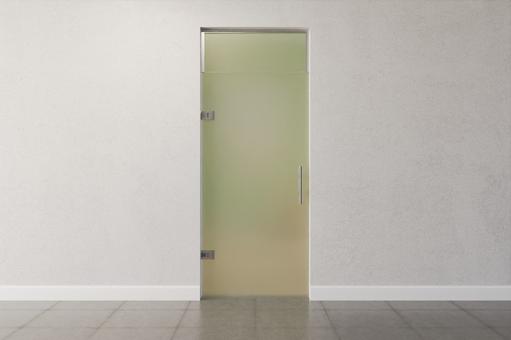 Dekoracyjna całoszklana drzwi wahadłowe z górnym oświetleniem z specjalnie pokrytego szkła hartowanego: