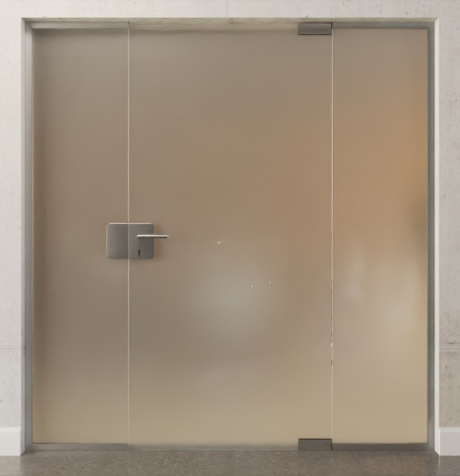 Stylowe drzwi szklane z dwoma bocznymi panelami, wykonane z wytrzymałego szkła bezpieczeństwa: