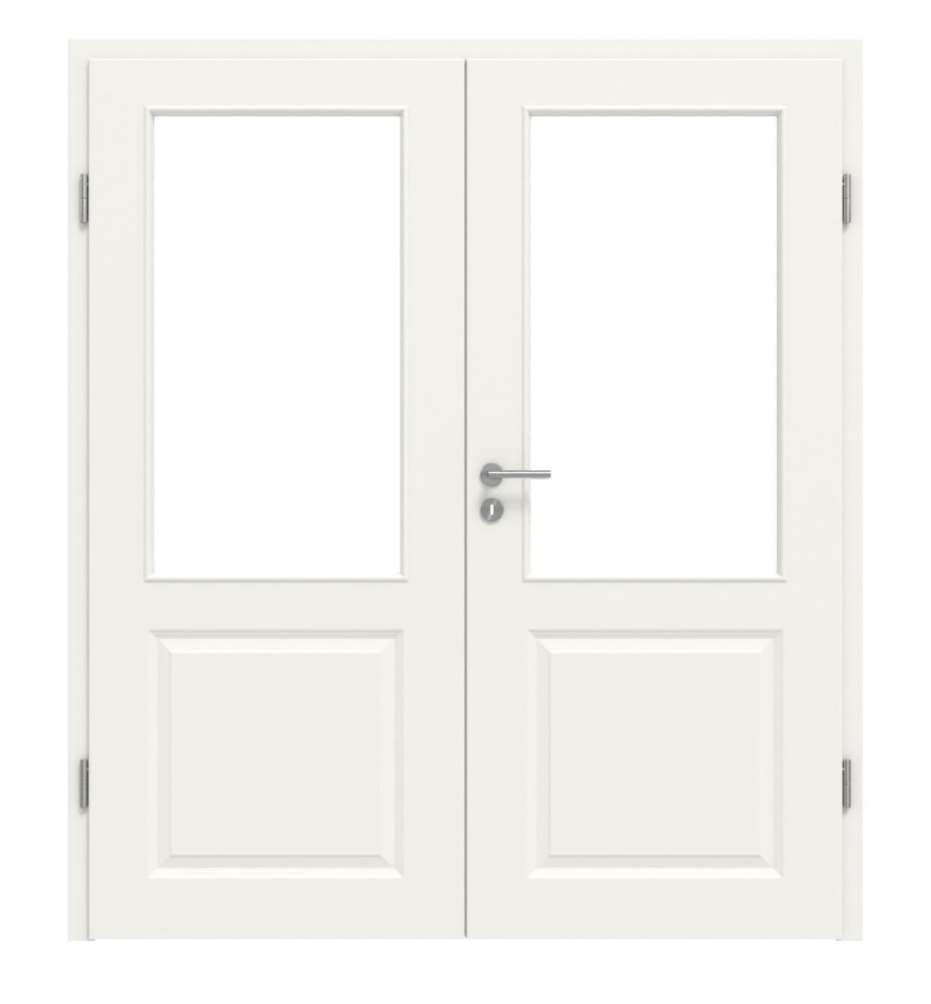 Jasne drzwi podwójne z łatwą w pielęgnacji powierzchnią w białym lakierze: