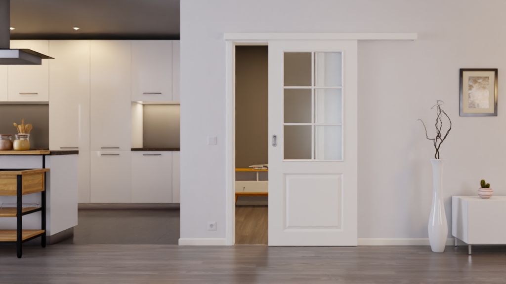 Cicha drzwi przesuwne w białym lakierze z właściwościami odpornymi na brud: