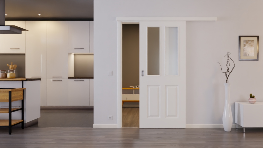 Komfortowa drzwi przesuwne w białym lakierze z właściwościami odpornymi na brud: