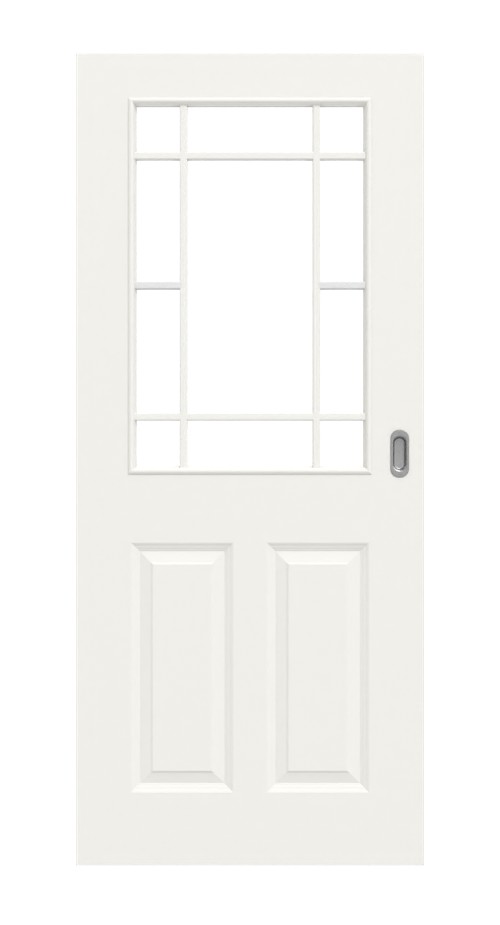 Biała powierzchnia lakierowana w kolorze RAL 9010 lub RAL 9016 nadaje drzwiom elegancki wygląd. Klasyczny wzór drzwi powstaje dzięki wpuszczonemu profilowaniu. Przez szklany otwór do pomieszczeń wpada światło i ciepło.