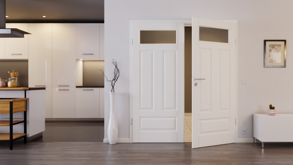 Trwały model drzwi wewnętrznych z odporną na brud powłoką w białym lakierze: