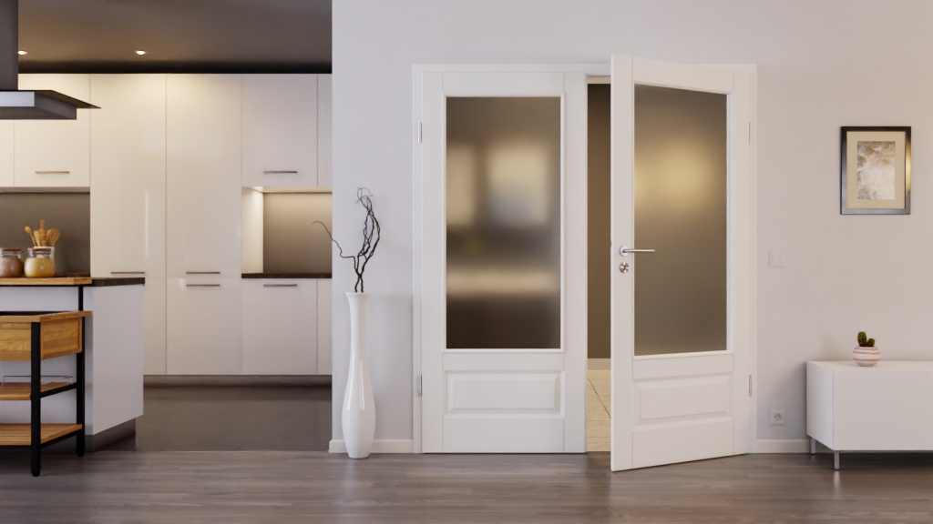 Trwały model drzwi wewnętrznych z odporną na brud powłoką w białym lakierze: