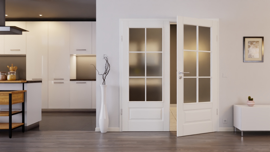 Trwały model drzwi wewnętrznych z odporną na brud powłoką w białym lakierze:
