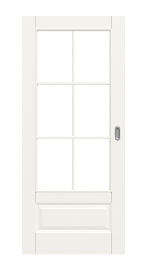 Przezroczyste wnętrze powstaje dzięki zintegrowanemu przeszkleniu. Eleganckie białe wykończenie w kolorze RAL 9010 lub RAL 9016 nadaje skrzydłu drzwiowemu wspaniały połysk.
