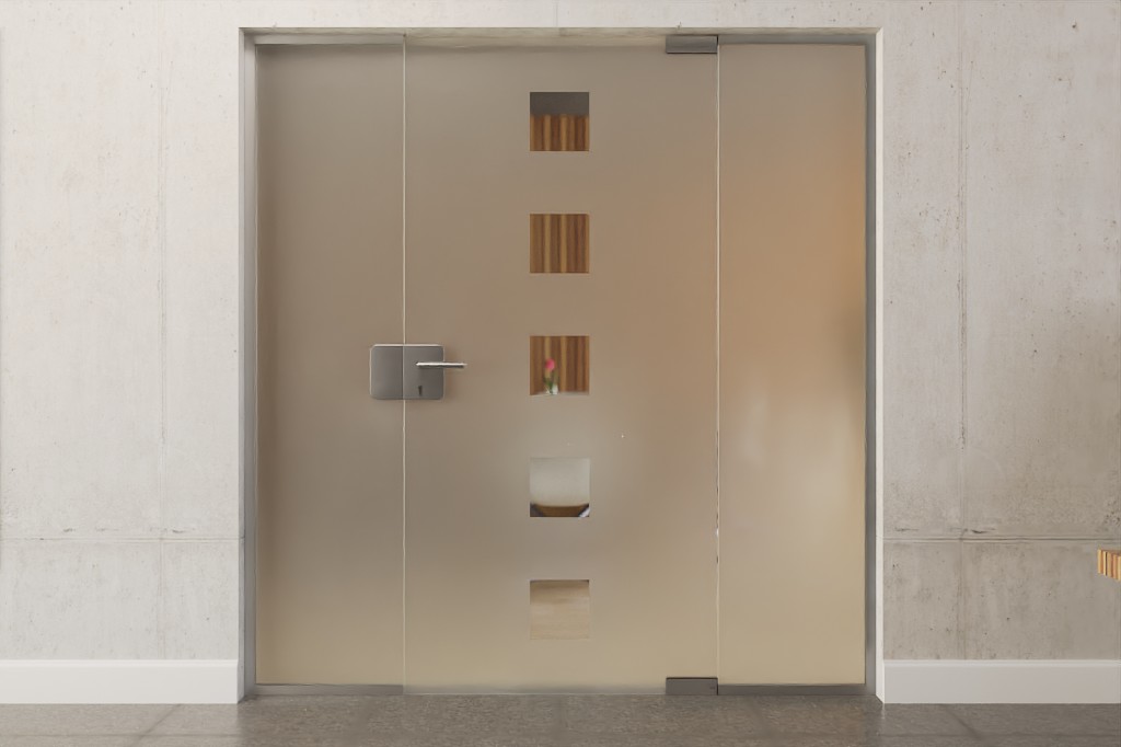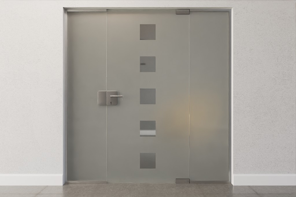 Stylowe drzwi szklane z dwoma bocznymi panelami w jakości markowej z szkła hartowanego odpornego na brud: