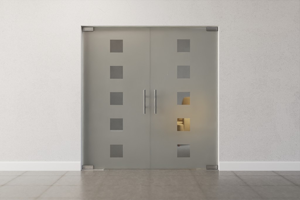 Trendy podwójne drzwi wahadłowe, wykonane z wytrzymałego szkła bezpieczeństwa: