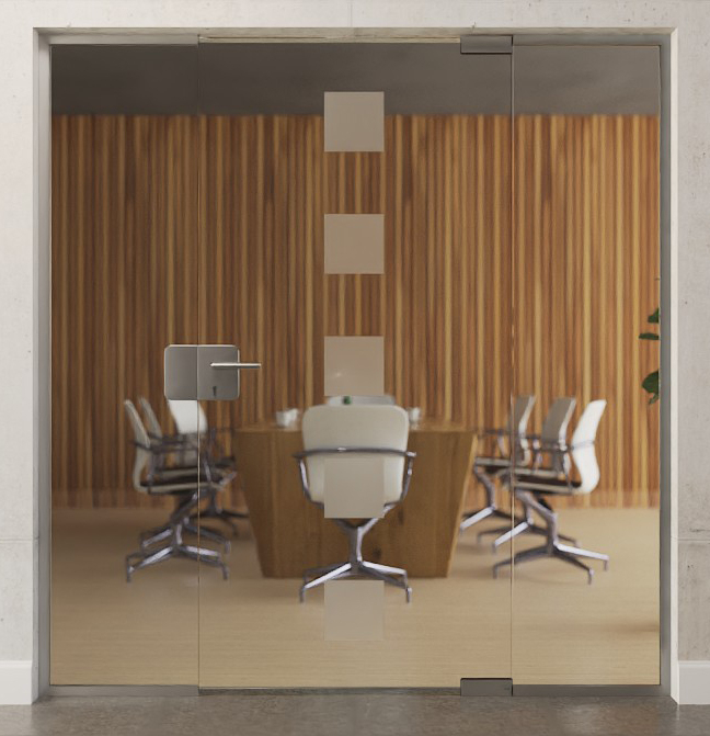 Nowoczesne drzwi szklane z dwoma bocznymi panelami wykonanymi z wytrzymałego szkła bezpieczeństwa: