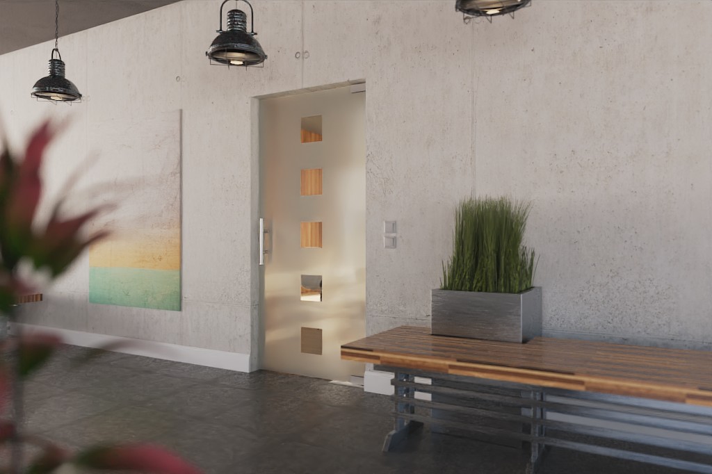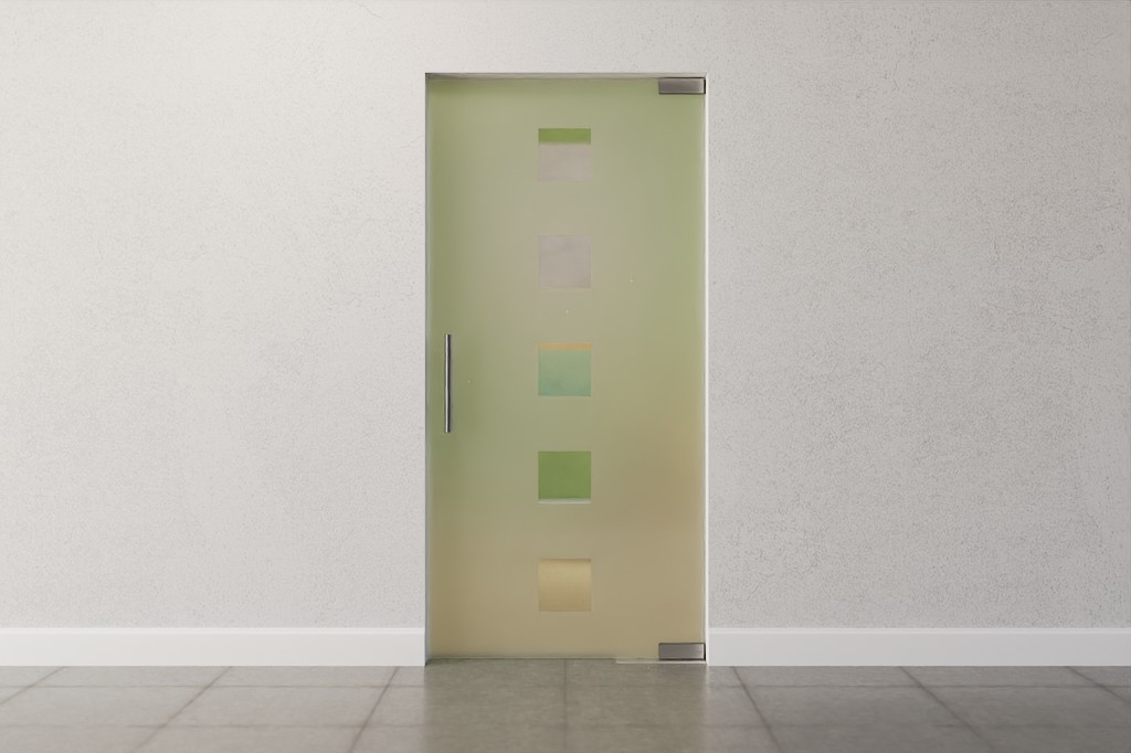Modna drzwi wahadłowe z specjalnie pokrytym szkłem hartowanym: