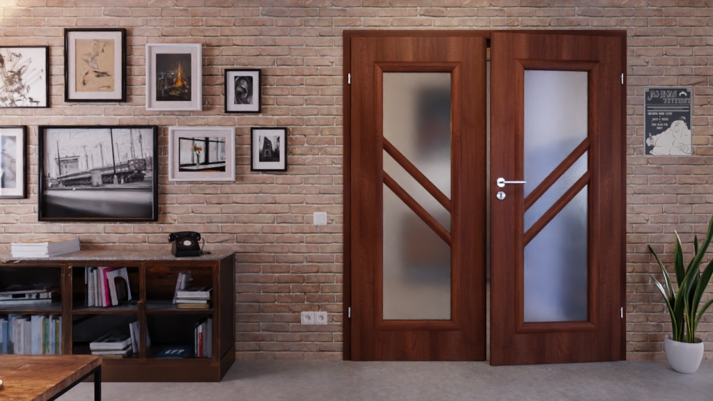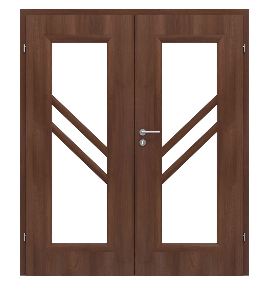 Drzwi pokojowe podwójne w kolorze Primo Nuss z subtelnie zaokrąglonymi listwami dekoracyjnymi: